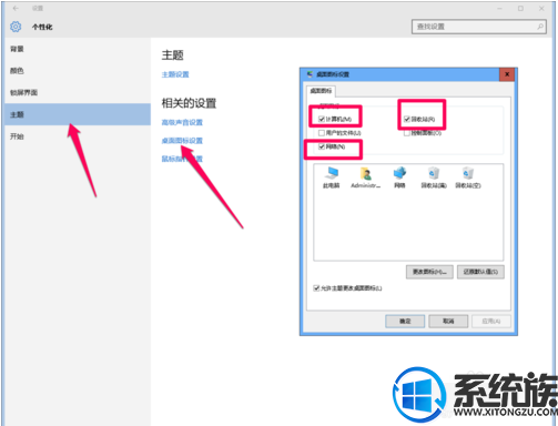10.调出"我的电脑",“回收站”等桌面电脑图标;在电脑桌面空白处右击鼠标,选择“个性化配置”,勾选“我的电脑”、“回收站”,如下图所示;