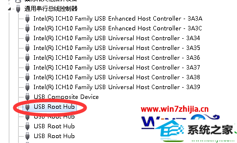 4、在它的下拉菜单找“usb root hub” ,双击打开;
