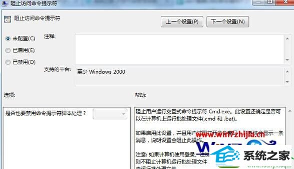 2、在打开的组策略编辑器窗口中,咱们在左边的菜单中依次展开“用户配置”-“管理模板”-“系统”,然后在打开的系统文件中,找到并双击“阻止访问命令提示符”项;