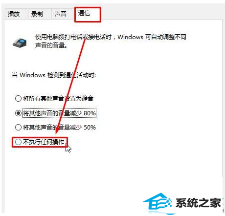 2、在顶端切换到“通信”选项卡,在下面点击“不执行任何操作”,点击应用并确定即可。