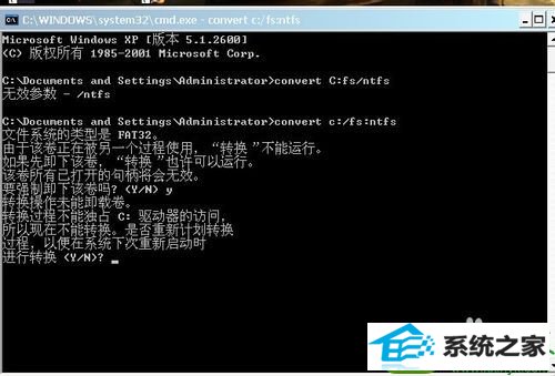 4:然后再dos界面输入 convert c:/Fs:nTFs ,如下图。