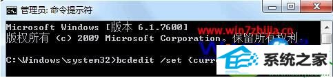 3、点击菜单,然后在附件中找到命令提示符,然后右键点击,以管理员身份运行。打开命令提示符窗口之后,输入如下命令:bcdedit /set {current} nx Alwaysoff ,并单击回车。