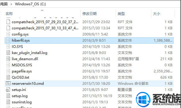 3、这样就能看到C盘的hiberfil.sys文件,这个文件是用来电脑休眠时保存内存中的重要内容的,无法直接删除;