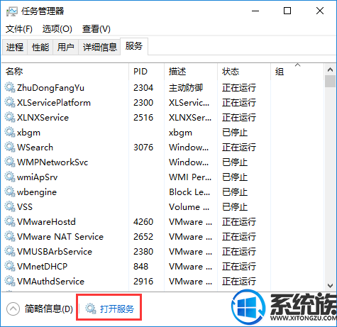 2、进入“服务”选项中,点击左下角的“打开服务”;
