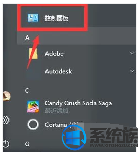 点击开始菜单,并点击列表中的“控制面板”选项。