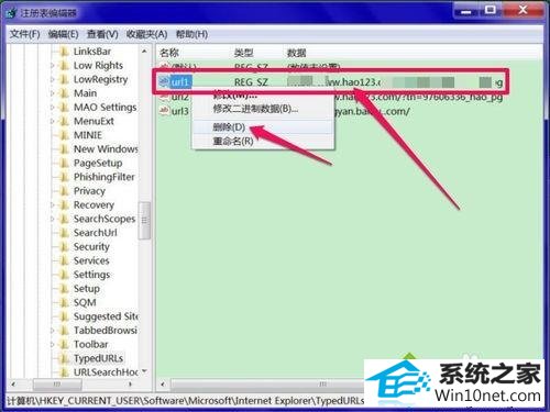 3、找到带hao123字样的项就直接删除,值的话就把数值数据清空;