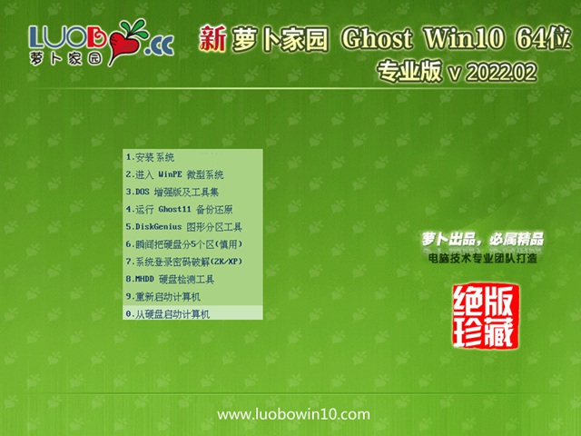 新萝卜家园系统win10 x64位V2022.02版本U盘快速装方法